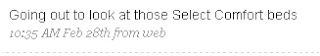 Select Comfort is clearly monitoring their brand on Twitter and responding to users who tweet about their product: